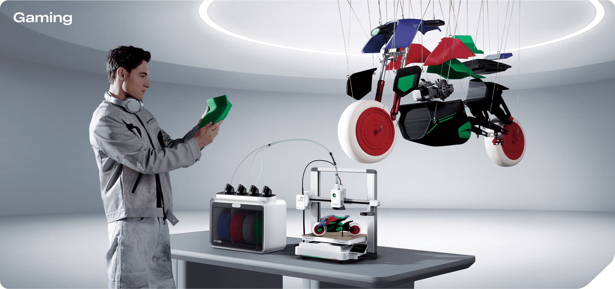 The built-in RGB light bar shows printing status in real-time. Being programmable, you can customize the lighting effect to match your own style.